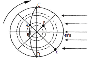(3)图示直射点经度是45°E,由自转方向可判断F经度是0度;图中每隔30划了一条纬线,由自转方向可判断是南半球,F点的坐标(0°, 60°S)。