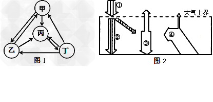 2.图2数码所示辐射中,直接受弥漫在大气中的火山灰影响而减弱的是