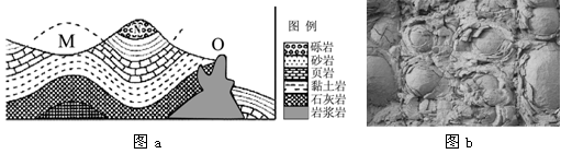 A.地壳上升——岩浆侵入——风化堆积 B.地壳下降——岩浆喷发——风化侵蚀 C.岩浆喷发——地壳下降——风化堆积 D.岩浆侵入——地壳上升——风化侵蚀 4、综合题 (14分)下图中图a是某地的地质剖面图, 图b是O地某处花岗岩球状地貌景观图。据此完成下列问题。 5、单选题 下图景观名为“佛掌沙丘”,位于雅鲁藏布江北岸的山麓地带。每当枯水期时,其附近河流中常有河沙出露,经强风年复一年地吹送,逐渐在河岸上形成了这一巨大、突兀的沙丘。据图文资料回答:形成“佛掌沙丘”景观的主要外力过程是( ) |