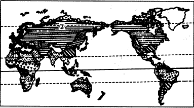 3、综合题 读世界陆地自然带分布图,回答下列问题。