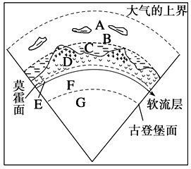 【小题1】据图可知:图示C表示水圈,而B表示生物圈,A错;图示D表示地壳,B错;地震波经过F、G之间的交界面,横波速度减小为0,但纵波速度不为0,D错;A、B、C、D、E共同形成了人类赖以生存的地理环境,C正确,所以本题选C。