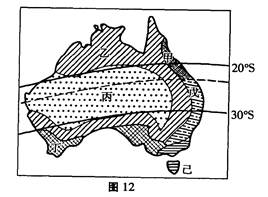 A.从东向西水汽增加 B.从西向东温度降低 C.从东向西海拔降低 D.从西向东风力增大 参考答案: 本题解析: 本题难度:简单 2、综合题 读世界某区域示意图,回答下列问题。 参考答案:(1)亚热带常绿硬叶林;光热充足或夏季高温干燥 本题解析: 本题难度:一般 3、单选题 图12为“澳大利亚自然带分布图”。读图完成下题。 |