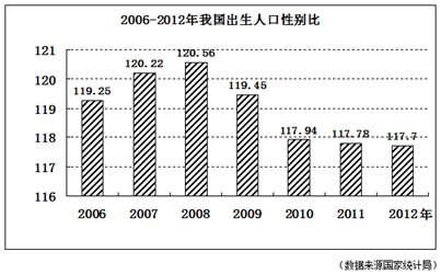 1、单选题 出生人口性别比通常用女婴数为100时所对应的男婴数来表示,读下图可知
