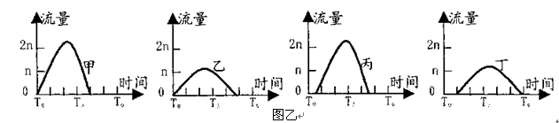2、单选题 某兴趣小组做了如下实验:制作规格大小相同的M、N、O、P四个水槽,现将底部具有透水性能的M、N水槽置于同一水平高度,水槽内分别放置带土草坪和小砾石;在M、N 水槽的正下方,斜放底部不透水的、倾角相同的O、P两水槽,如甲图所示。实验时,兴趣小组同时在M、N上方均匀洒入等量自来水,并立即观察记录O、P水槽出水口水流量的情况。据此,回答下列各题。