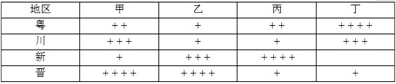 4、单选题  下表表示寒潮、酸雨、水土流失、土地荒漠化对四省(区)的危害程度(+号越多代表危害程度越高)。据此回答9~11题。