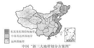 1、单选题 随着区域经济社会的快速发展,中国现行东、中、西三大地带已经难以适应新形式的要求,有学者提出中国宏观区域经济的“新三大地带”的划分方案,分为东北及东部沿海地带、中部及近西部地带、远西部地带。完成下列问题。