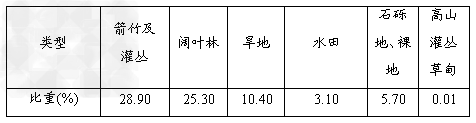 总面积约94 00 km2,下表为该区域部分土地覆被类型面积构成,下图示意该区域部分土地覆被类型的地形构成。据此回答1~3题。