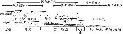 2、单选题 下图是黄土高原外力作用示意图。读图完成1~2题。