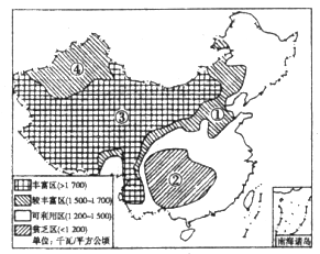 2.地质历史时期积累生物固定的太阳能主要是指由生物演化而来的能源:石油、天然气、煤;①华北平原、黄土高原,这里煤炭、天然气和石油都丰富;②四川盆地云贵高原,天然气和煤炭较丰富;③西北大部,石油、天然气较丰富,分散在柴达木盆地和河西走廊;④新疆,两盆地区石油和天然气丰富;相比四个地区,还是①区能源最丰富。选A正确。