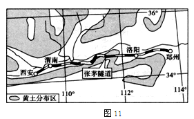 1、单选题 图11为郑(州)西(安)铁路客运专线示意图。其中专线穿过的张茅隧道是目前世界上首座在湿陷性黄土上建设的、超大断面特长铁路隧道。据此回答21~22题。