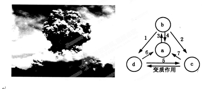 1.上右图为地壳物质循环示意图,代表此次火山活动的地质过程及形成的岩石是2.冰岛火山灰弥漫到欧洲,致使欧洲航空业蒙受巨大损失。其主要动力来自
