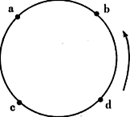2、单选题 下图表示某纬线圈,箭头表示地球自转方向,a、b、c、d四点将纬线圈平分。据此回答下面1—2题。