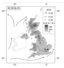 小题2:英国位于亚欧板块内部,亚欧板块与美洲板块的交界处位于北大西洋中脊,A错误;珊瑚礁生长于热带亚热带的温暖浅海海洋,而英国位于温带海区,B项错误;英国的地形以山地、平原为主,C项错误;受岛国影响,河流流程较短;植被覆盖率较高,故河流含沙量较少,受温带海洋性气候影响,冬季气温高于0°C,故河流无冰期,D项正确。