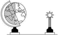 5、单选题 将一盏电灯放在桌子上代表太阳,在电灯旁放置一个地球仪代表地球,拨动地球仪模拟地球运动。读下图完成完成下列问题。
