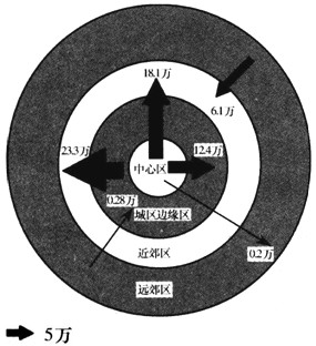 A、中心区和近郊区为人口净迁出区