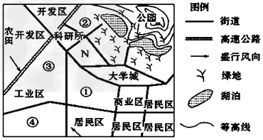 2.为了正确处理城市各功能区之间的关系,减少相互干扰,图中城市拟新增一片绿地,则应优先布局在