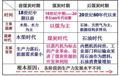 ? (1)从图中可以得出:前煤炭时期与煤炭时期的分界线约?年左右。 (2)前煤炭时期又称为“?时代”。 (3)后煤炭时期又称为“?时代”。 (4)从长远看,能源结构将以?能源为主,转向?能源为主的能源的多样化利用阶段,在转换的过渡期仍然?、?、?为主。