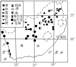 ①温室气体排放多,城市“热岛效应”增强? ②改变大气组成,水汽含量增加 ③城市建筑物面积扩大,生物的多样性减少? ④城市地面汇流减慢,内涝加剧 A.①② B.③⑧ C.①③ D.②③ 3、单选题 气候变暖对全球生态环境和社会经济产生影响。下列现象与气候变暖有关的是①中低纬度沿海地区台风减少;②冰川融化加速,海平面上升;③我国东北水稻种植向北推进;④青藏高寒区农作物播种推迟。 4、单选题 下图是2004~2006年世界各种谷物的产量变化图。读图回答1—2题。 5、单选题 《联合国气候变化框架公约》第十七次缔约方会议于2011年11月28日在南非德班召开。下图是南非矿产资源分布图,读图回答题。 |