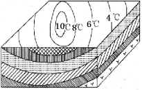 1、单选题 读右图某地等温线分布及地质剖面,回答题。