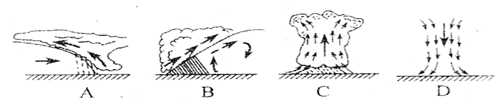 本题解析:本题考查常见的天气系统。A图表示冷锋天气;B图表示暖锋天气;C图表示气旋;D图表示反气旋。台风为强烈发展的热带气旋。