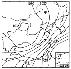 ? ①高压中心 ②低压中心 ③低压槽 ④高压脊