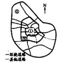 2.影响城市功能分区的因素除距离市中心的远近,还受交通通达度的影响,在市中心边缘,可能由于交通不便,故商业不愿付出较高的地租,故没有形成商业区,而住宅区的付租能力较高,形成住宅区。