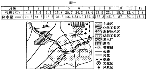 5、单选题 城市是人类活动对地理环境影响最深刻的地方,优越的地理环境更有利于城市的发展。读我国东部某城市多年平均气候资料(表一)和城市布局略图,完成1—2题。