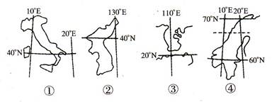小题1:根据图示的经纬度位置和海陆轮廓判断,①表示亚平宁半岛;②表示朝鲜半岛;③表示我国雷州半岛;④表示斯堪的纳维亚半岛。我国雷州半岛和欧洲西部的斯堪的纳维亚半岛位于板块内部,地壳运动稳定,A项错误;半岛②位于亚洲,B项错误;半岛②③降水量较多,主要是由于受季风气候影响,C项错误;斯堪的纳维亚半岛西侧的峡湾属于冰川侵蚀作用而形成的典型地貌,D项正确。