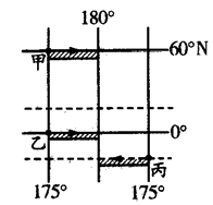 小题3:结合经纬度位置判断:乙位于太平洋中间;错误;C项乙到丙向东跨越日界线,日期减一天;错误;D项乙和丙属于同一个时区,时间相同;错误。故选A项