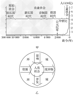 (1)甲图所示三种社会形态中,哪些属于乙图所示人地关系原理的范畴?