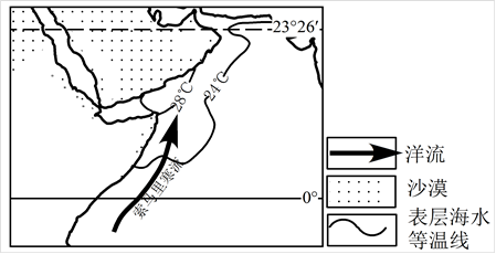 (2)根据图中等温线分析,索马里洋流从水温低于24℃的海区流向高于24℃的海区,索马里洋流的水温比流经海区的水温低。所以是寒流。
