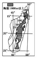 【小题2】该岛屿地形特征是中部地势高,东西两侧地势较低,①对,②错。地形以高原、平原为主,③对、④错。所以B对。