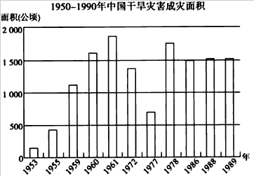 (3)分析下图所示的我国近40年干旱灾害的年际变化特点,并简要分析其自然原因。