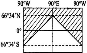 (3)此时,赤道与晨昏线相交点的经度分别为?(2分)