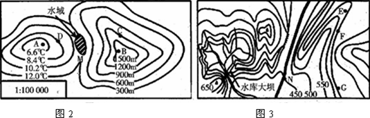 3、单选题 图2和图3是某地附近两区域等值线分布图(比例尺相同),读图完成: