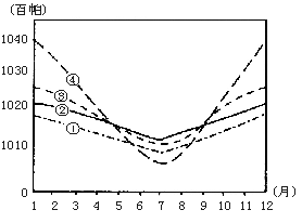 3、单选题 下图是伦敦、莫斯科、华盛顿、乌兰巴托四个城市气压变化曲线图,判断哪条曲线是乌兰巴托气温年变化曲线