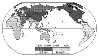 4、单选题 全球变暖是当今世界面临的重大环境问题之一。下图是“全球温度上升3℃后,世界不同区域靠雨水生长粮食产量的增减状况”示意图。读图,回答1—2题。