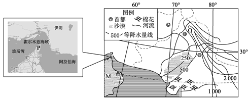 (4) 根据图中信息说明图中棉花种植的有利自然条件。(4分)