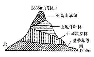 4、单选题 该图为我国某山地垂直自然带分布示意图,根据图中提供的信息回答1~2题。