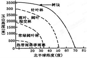 小题1:某登山者从海拔500米到1900米刚好走过常绿阔叶林,如果是在水平陆地上要完全通过常绿阔叶林理论上至少要走约?