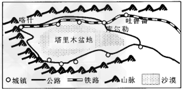 5、单选题 下图是塔里木盆地示意图,读图回答1~3题。
