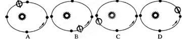 小题2:2010年10月1日18时59分57秒发射,此时在秋分(9月23日)后,符合的是A图。