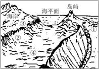 本题解析:从海底地形示意图中看出:大陆架在靠近大陆的浅海部分,是大陆向海洋的延伸部分,它的深度一般不超过200米;大陆架外缘有一巨大的陡坡,叫做大陆坡,水深从几百米陡增到几千米;大陆坡以外分布面积广大的平坦部分,则为洋盆;洋中脊是大洋中的山脉或隆起,为海底山系。