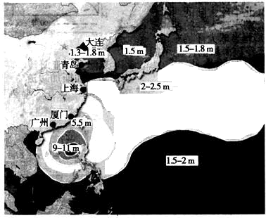 (4)①建立完善的海洋灾害观测网络,开展海洋灾害预警和评估业务;②建立海上搜救中心和沿岸防灾应急系统;③加固沿海堤坝;④提高全民的防灾减灾意识;⑤保护红树林和珊瑚礁等。(3点即可)