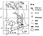 2.结合图示的经纬度位置判断图示地区位于几内亚湾北部,故南部沿海的热带雨林气候,北部位于10°--回归线之间为热带草原气候。