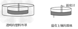 2、单选题 某中学地理学习小组为了说明某种地理现象,设计了一个简单实验(见下图)。主要步骤有:①将一些土壤分别放入两个器皿中,其中一只器皿的外面倒扣一个透明的塑料罩;②在塑料外罩顶部钻一个小洞,将一支温度计插到器皿的土壤中;将另一温度计直接插入另一只器皿的土壤之中;③将两个器皿放置在阳光下,保证其接受同样的光照射,每隔1小时观察一次温度计,并记录温度。据此回答1~2题。