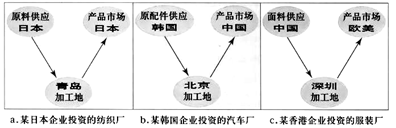 4、单选题 该图为我国三家企业投资建工厂的原料地、加工地和产品市场示意图,读图完成问题。