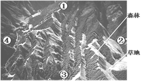3、单选题 我国的祁连山地长有“阴阳脸”(如图),即一侧山坡林木葱郁(“阴脸”),另一侧山坡草地青翠(“阳脸”)。读图并结合所学知识完成下列各题。