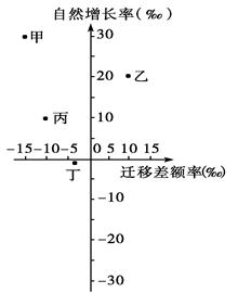 5、单选题 下图表示人口数量变动状况(迁移差额率正值表示人口迁入),据此完成题。