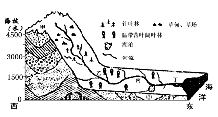 1.关于图示地区地质、地貌和地层的叙述,正确的是2.若在图中乙处修建水库,则对生态环境可能产生的影响有